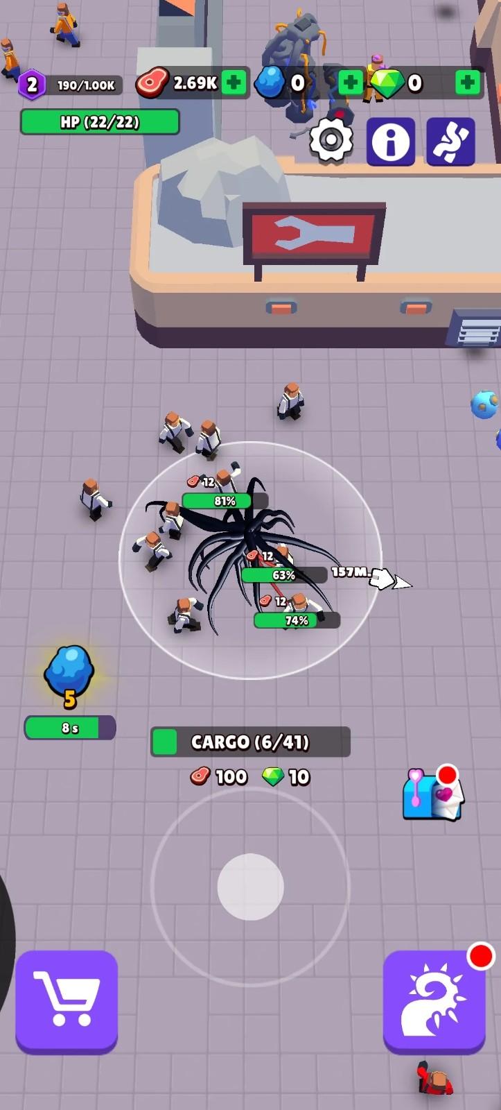2、攻击和吞吃。玩家可以靠近人类造成伤害并吞吃他们,吞吃后,毒液的体积会增大,攻击力也会提升。