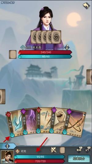 1、游戏对局开始后每人会有5张初始手牌,每一张牌都有自己的内力消耗值,消耗下方的内力即可释放。
