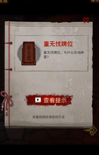 6、有很多牌位的房间,挪开蒲团,地上有裂缝,可以用凿子加上锤子来撬开。拿到童无忧牌位。