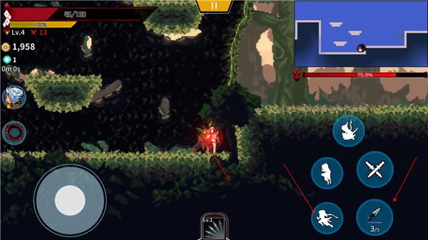 3、实战(打骷髅王的时候用加速跳可以躲掉他的平砍,第二次被蹭刀是八千代的胸太大了