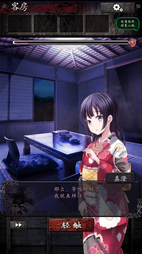 12、然后直接返回卧室,经过一系列对话,本章结束。需要注意的地方只有晚饭之后的那一段,移动拉门时发现打不开了,这时要点击屋子里放在橱柜上的提灯,爬到天花板上面偷听店家的对话(往男主角的饭菜里下安眠药,趁机灭口)。