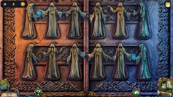 18、点开塔楼大门,放入8个和尚雕塑,调换和尚雕塑使他们的手形成能量链(如下图),完成后大门打开。