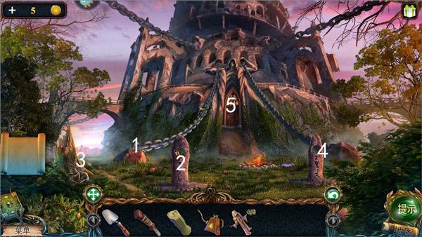 17、前往塔楼,对图中3使用锯子锯开得到配方和第八块和尚雕塑,将两个魔法球放在两侧石柱的洞里,触发剧情。