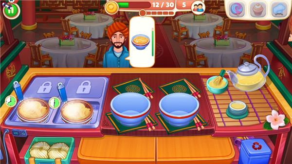 3、丰富经营:在游戏经营自己的中餐厅,并逐渐解锁更多的特色食谱,吸引更多的顾客光顾。