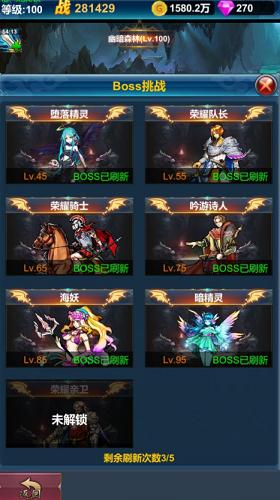 BOSS挑战可以自己选择不同的方式,快速选择各个等级的BOSS挑战玩法。