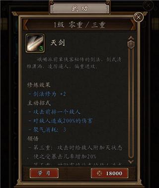 提高剑法修为会增加持剑时的物理攻防,以及连击几率。