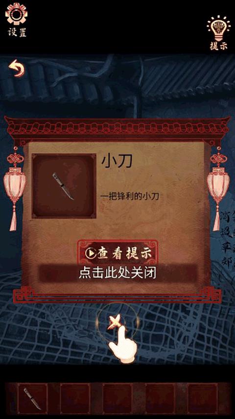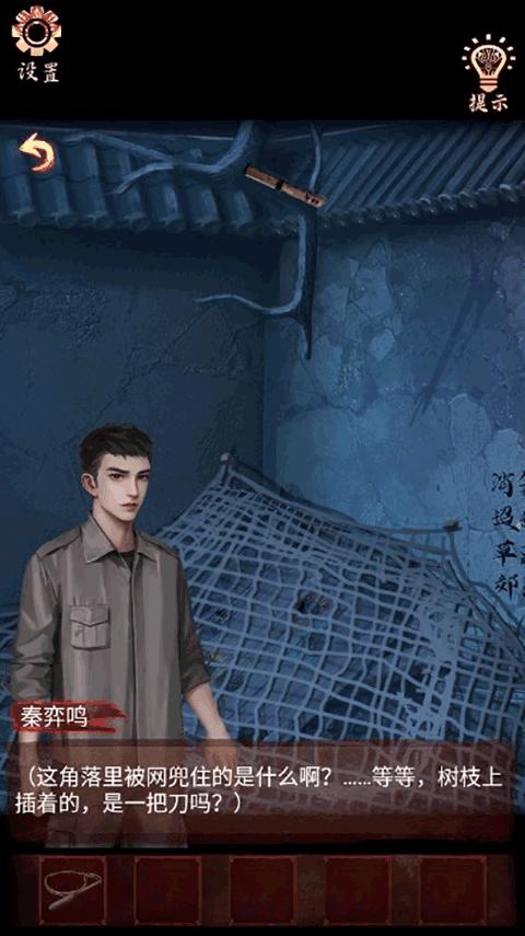 3、点击墙角的网,用【抽绳】抽落树上的【小刀】