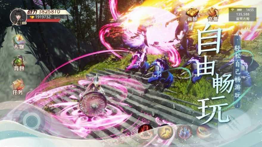 玩家角色可以自由聚集其他仙侠角色,通过群战攻击敌人然后成为最强大神;
