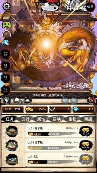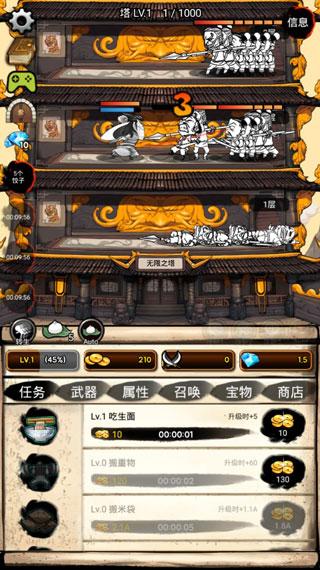 无限之塔手游是一款以漫画风格为题材的无尽闯关游戏,同时也是一款放置类的模拟养成游戏,该游戏拥有无尽的关卡和数不完的挑战,玩家可通过扮演的角色来完成无限之塔的挑战,期间玩家可通过挑战每层的敌人,来获取金币和钻石,利用金币和钻石的资源来进行武器、召唤、属性以及宝物的加持,多角度的战力加成养成,会让玩家的挑战变得更加轻松。