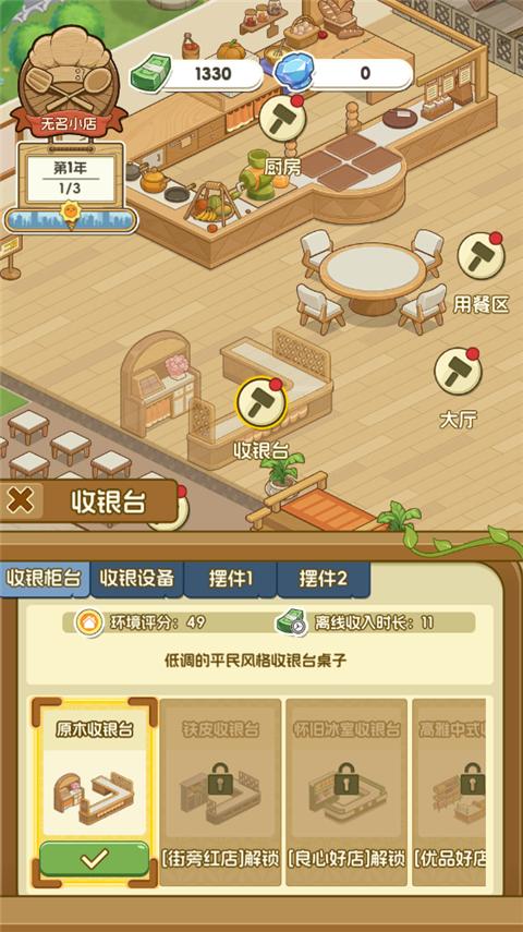 游戏要求你精心布置餐厅的各个角落,包括厨房、用餐区、收银台以及室外景观,同时招募并管理一支由服务员、收银员和厨师组成的团队。为确保餐厅能够顺利且高效地运营,你需要合理使用资金进行餐厅装修和员工星级提升。