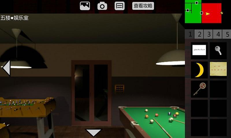 5、回到1F•电梯间。点击5F、出电梯、进入5F•西侧廊。左转3次,解开红色1号门,进入5F•生命之歌。触发剧情。后退,取走【遥控器】(在桌子上),出门、进入5F•西侧廊。点击密码器,要输入5位密码。联想到retaw,门锁解除,进入5F•娱乐室。取走【3号钥匙】,触发剧情。丹回到5F•西侧廊。