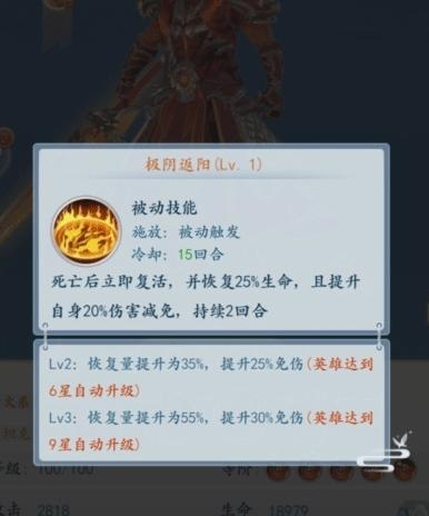 并且其复活被动的冷却回合是15回合,不是唯一被动,因此,容错率较高。加上复活之后的免伤被动,只要队伍当中有着强力的治疗角色的话,那么即便一不小心暴毙了,也能以个较为良好的状态重新加入战斗。