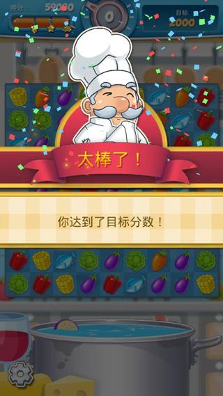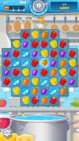1、玩家们在游戏中要不断地去消除掉那些食材,那些食材的类型不同,我们要注意正确的去将那些食材组合在一起,并且在移动的时候还要注意那些食材的位置,并且拿到更多的得分加成。