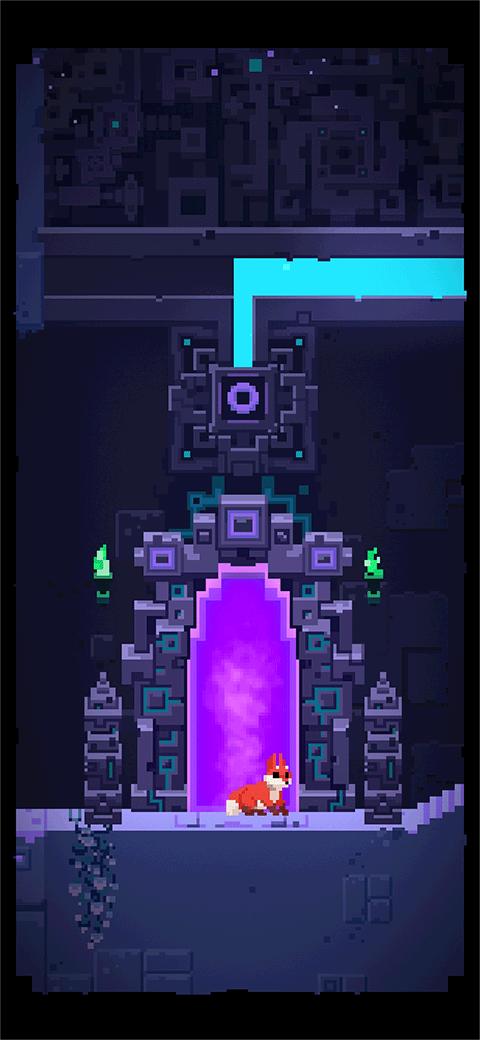 2、然后控制角色穿梭在地下城中寻找逃走的狐狸,将角色移动至紫色门中即可进入另一个场景