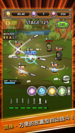打造最强名剑游戏是一款创新有趣的放置养成手游,游戏采用经典竖屏UI界面设计,常用的武器、铭文、锻造、战斗、商店按钮有序分部在屏幕下方一目了然,结合收矿、锻造、打怪、升级等传统放置RPG玩法,让玩家体验全新的休闲挂机乐趣。与传统放置游戏不同的是,打造最强名剑将培养英雄替换成了培养名剑武器,战斗时玩家可以指挥亲手打造的各种名剑消灭敌人,同时配合使用华丽与强大的技能,即使再强大的boss也招架不住。
