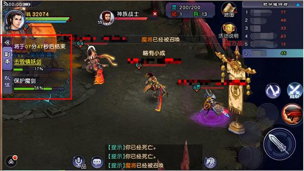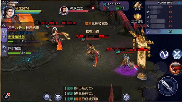 双方分为神魔两阵营,守护各自的主基地:镇妖剑和魔剑。点击任务栏可自动锁定对方主基地前往攻击。对主基地的攻击与伤害无关,攻击固定次数可将其摧毁,优先摧毁敌方主基地的阵营提前获得胜利。(豪侠同学们不用担心,每一次攻击算两下!)