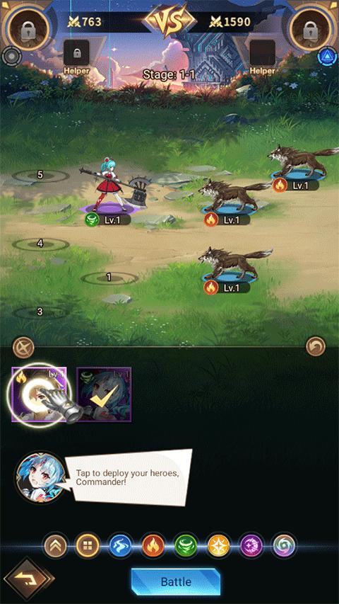 2、在战斗前请先点击你的英雄完成阵容部署,然后点击battle开始战斗