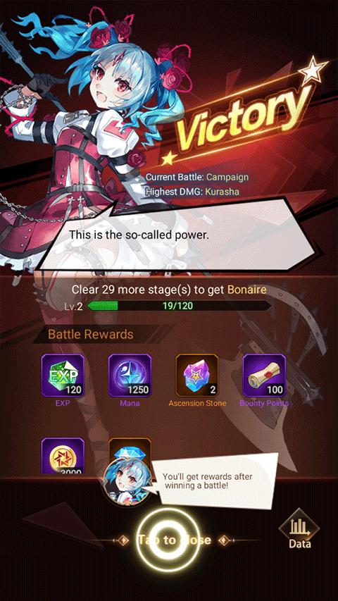 4、战斗胜利后就可以进入下一关并领取奖励啦