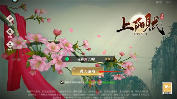 1、进入游戏首页,选择你想要的服区,点击进入游戏;