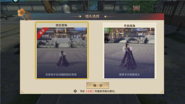 4、选择好自己的视角,一种是锁定,一种是开放,选择好后,点击确定;