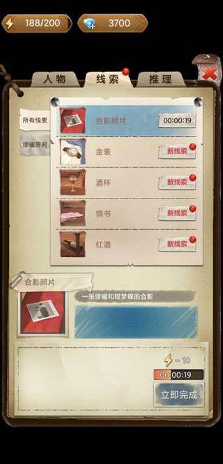 4、在推理中,通过组合分析得到的线索,即可得出答案,推理成功即可获得钻石奖励;