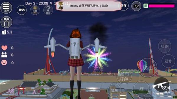 8、晚上20:00我们传送到咖啡馆,利用喷气背包向上飞,可以看见一个UFO,把UFO击落,就可以完成任务。