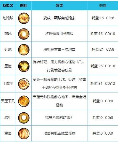 解析:岩甲能提升防御能力,这套技能适合清怪,通过怒吼聚集周围的小怪,然后使用碎地和天蓬下凡进行输出或者平A也行。有了岩甲也保证了生存能力。