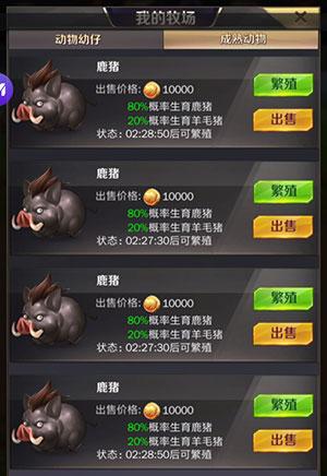 养猪的第一天,建议把两种猪饲料、繁殖激素全部买满,争取24小时内拥有4只鹿猪。