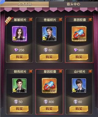 目前人才市场可以通过刷新出:400人脉=1000基因胶囊,100钻石=1000基因胶囊,900钻石=10000基因胶囊。人脉基因胶囊那肯定是必买,钻石基因胶囊根据自身材料酌情购买。