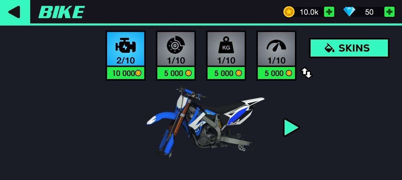1、自行车升级和定制:在游戏中,玩家可以升级和定制不同皮肤的自行车,以增添个人风格。通过解锁和应用皮肤,玩家可以让他们的自行车脱颖而出,并在特技世界中表达自己的个性。