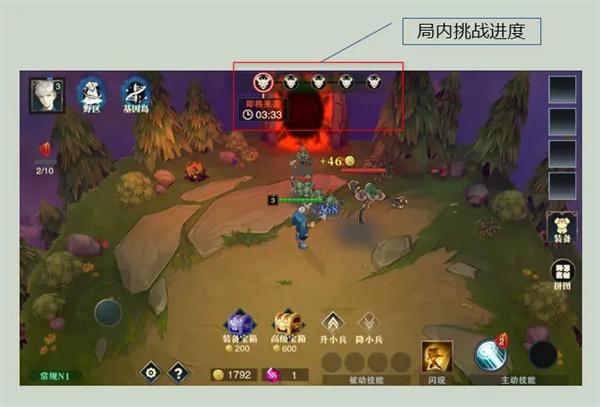 除了在固定场景打小兵,也可以去野区打野补充发育。野区出现野怪时会出现提示。点击野区按钮就可以瞬移到野区。