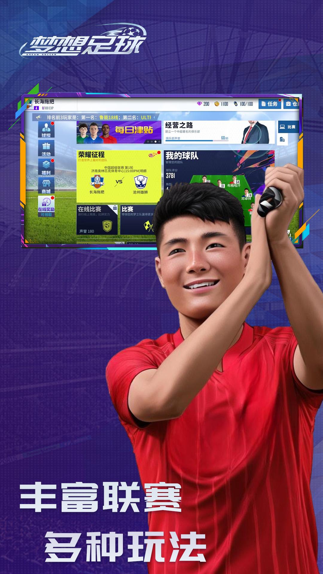 梦想足球手游是一款非常好玩的中超官方足球竞技游戏,招募更多拥有无限潜力的足球明星,培养他们的比赛经验和足球经验,打造梦幻球队,带领他们参加世界各地的比赛,喜欢的朋友欢迎前来下载体验。