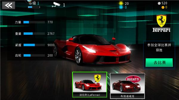 4、当你开车在练习阶段赢了的话,第一部需要选车,在展示厅中用硬币购买自己第一辆车到自己的车库里面。