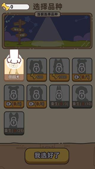 3、各种各样的品种任你挑选,开局先选择想当哪种类型的狗,然后在给狗狗点天赋。