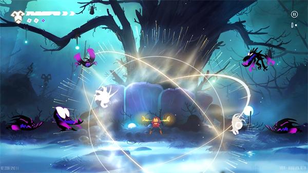 4、角色射出的光线对低等级的杂兵具有穿透能力,一次能消灭多个敌人,但中后期出现的高级敌人能够阻挡光线,对付起来要麻烦一些,这时候最好用咒术攻击辅助消灭靠近的敌人,否则很容因为受伤而导致连击中断,从而影响获得的分数。