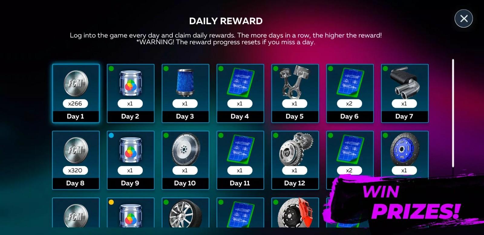 -每天玩游戏并领取每日奖励。