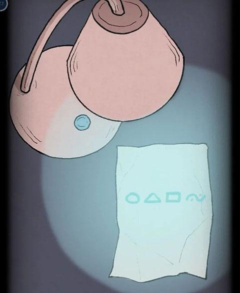 5、将白纸放在台灯下,点击开关换成蓝灯,纸上会出现四个图案。