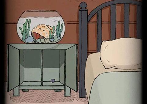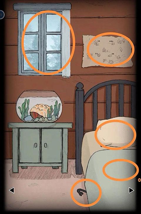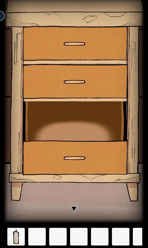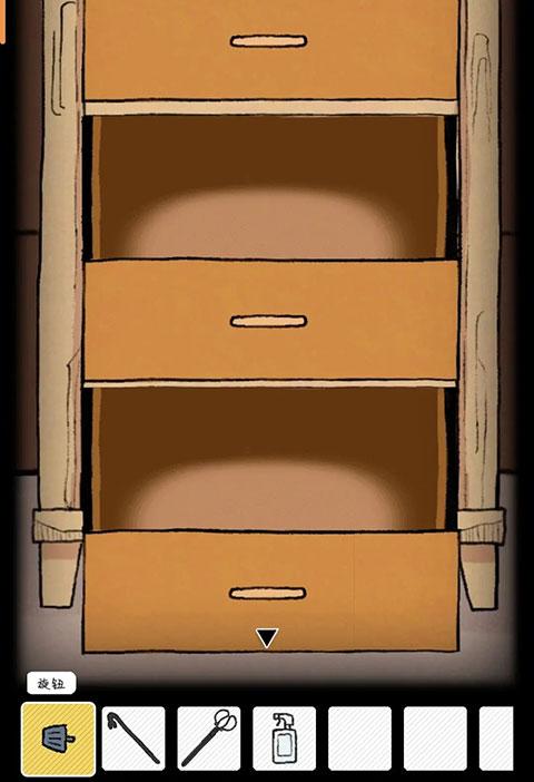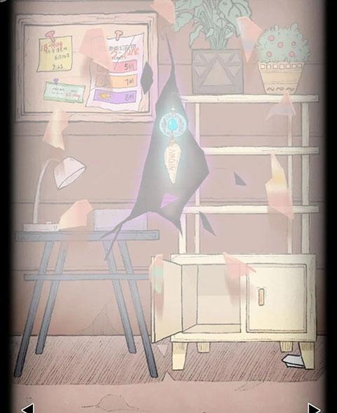 3、床底有撬棍;枕头底下是钥匙,可以打开旁边左侧柜子门,得到一个旋钮;床单底下是一个笔记本;窗帘拉上再拉开有个白纸。