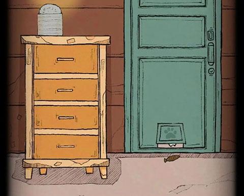 16、将小鱼干放在门下方的小洞口处,会有一只小猫拿走。