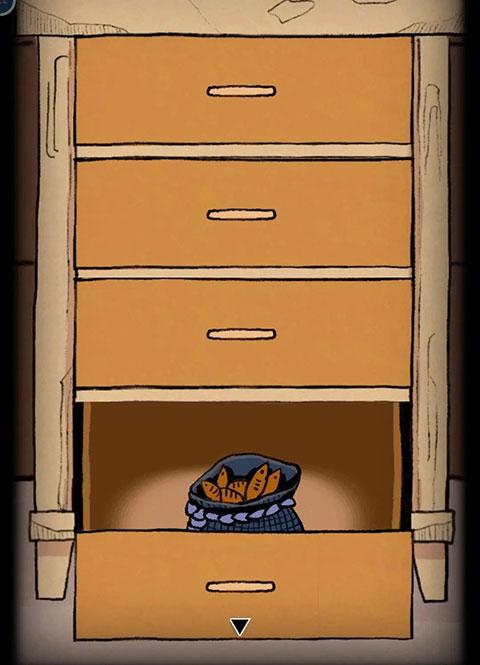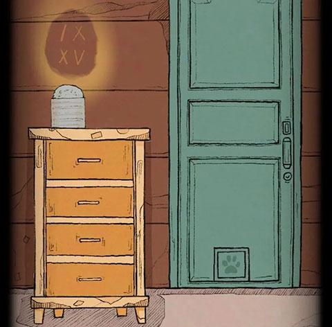 17、小猫拿走鱼干并给到柜子第二格钥匙,打开又得到一个旋钮。