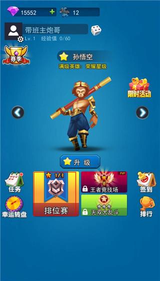 荣耀赛季排行,通过拉取玩家们真实战绩进行排行,每个月初赛季排行会进行一次重置,新老玩家都有机会体验独领风骚、鹤立鸡群!除此之外玩家还可以通过签到、完成任务、幸运抽奖、领取福利来增加收益购买英雄、升级英雄、获得道具。