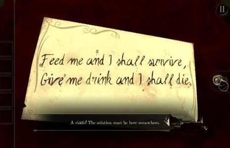 打开信封划出其中的信,红星位置有铜钥匙,拿取钥匙之后,转动画面就会看到旁边有一个容器对准锁眼,将钥匙插进去,然后旋转就可以解锁。旋转时方向是非常关键的,打开容器我们看到有一个目镜。