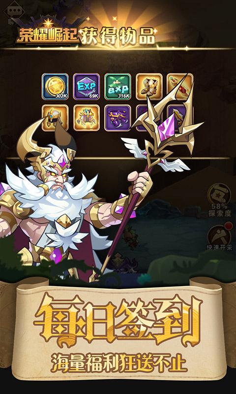 荣耀崛起手游是一款休闲的放置回合制游戏,是时下非常火爆的一款放置类手游,因为该游戏有着得天独厚的优势和福利,吸引了海量玩家的加入。值得一提的是,荣耀崛起官方版主打Q版画风,不仅把人物模型设计成一个个非常Q萌的形象,而且在战斗画面上,也去除了血腥与暴力,更多地是将战斗特效化,形象化,让玩家能在游戏中感受休闲解压,放松身心。既然是放置类游戏,那最关键的就是与玩家们结伴的小伙伴们,在荣耀崛起手游中,此类小伙伴被称为英雄,当玩家收集到了他们,那他们将会终身陪伴在左右,为我们战斗,尽心尽力,而且游戏为大家准备了众多Q萌霸气的英雄,助力玩家闯荡在这片大陆。