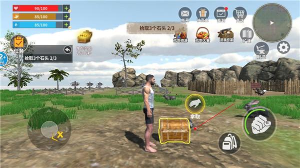 1、进入蛮荒进化生存游戏后,可以根据左边的任务来确定自己的目标。