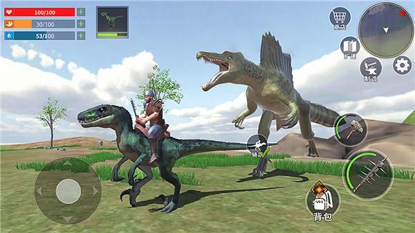 2、开放的史前恐龙世界让玩家可以在其中尽情的进行战斗和不同种类的生物一起互动。