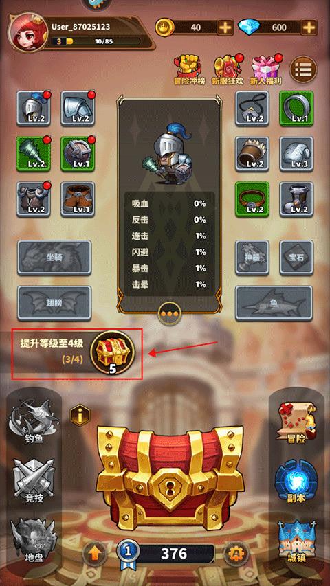5、获得的奖励可以用来提升宝箱等级,宝箱等级越高开出珍稀装备的概率也会越高