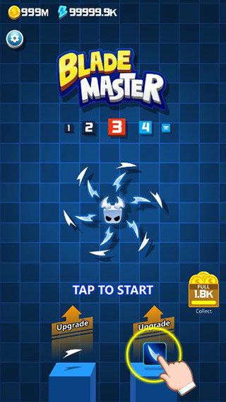 使用周围的旋转叶片杀死周围的敌人,然后增强实力,通过突破来解锁技能