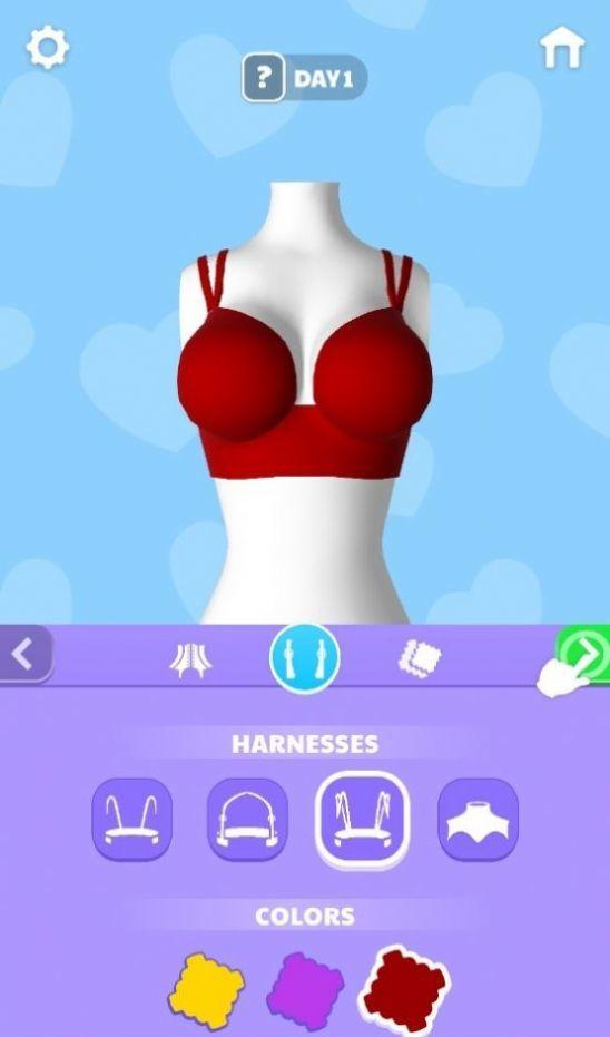 这款游戏首先它的玩法非常的自由,而且整个游戏的操作也非常的简单,玩家只需要根据游戏中的指示操作来完成相应的点击,即可去设计出更多不同类型的文胸,而且玩家还可以根据模特的身形然后来进行选择,通过使用不同的布料,选择更合适的材质来来做出满意的款式。