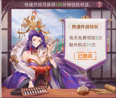 尽量将元宝用于快速战斗上,因为只有等级高了,才能产出更多的挂机收益。
