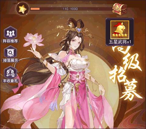 不管是普通招募券还是高级招募券都可以累积招募积分,达到1000积分后百分百抽一个五星武将。